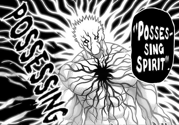 The Possessing Spirit involves overclocking the heart's cardiovascular output to rapidly boost their metabolic rate. The result increases their velocity, acceleration, torque and, consequently, their damage output.[2] Because of its effects, it is usually used as a trump card.