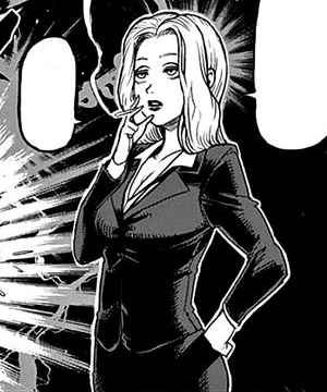 Being called into an emergency Kengan Association board meeting, she and other Association members discussed the upcoming competition between the Kengan Association and Purgatory as well as the recent murder of an individual impersonating Yuzaki Mumon.[9]